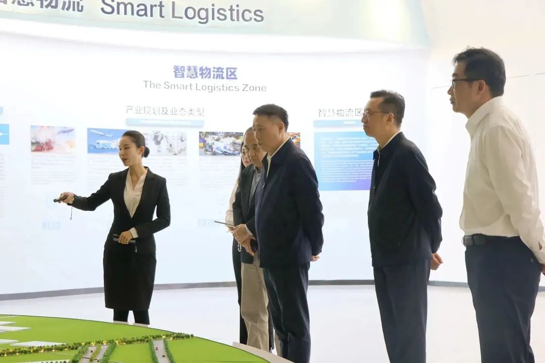 調(diào)研組一行在中新物流園展示中心聽取項(xiàng)目介紹