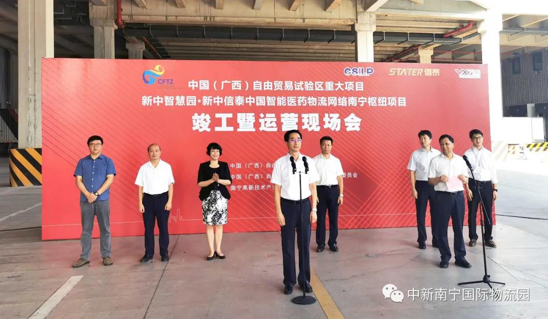 此次現(xiàn)場會,由南寧五象新區(qū)管委會副主任譚玫瑰主持,廣西新中產(chǎn)業(yè)投資有限公司總經(jīng)理鄭權(quán)介紹項(xiàng)目情況,自治區(qū)人大常委會副主任、黨組副書記,廣西自貿(mào)試驗(yàn)區(qū)建設(shè)指揮部指揮長張曉欽宣布“新中信泰中國智能醫(yī)藥物流網(wǎng)絡(luò)南寧樞紐項(xiàng)目和新中智慧園竣工暨正式運(yùn)營。”