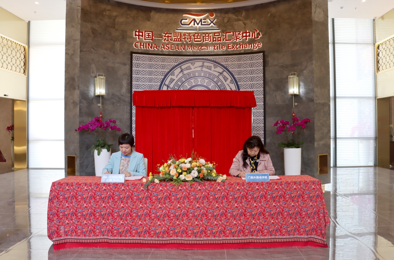 2023年12月7日,中國(guó)—東盟特色商品匯聚中心(簡(jiǎn)稱(chēng)“匯聚中心”)與廣西外國(guó)語(yǔ)學(xué)院舉行合作共建校外實(shí)習(xí)實(shí)踐教育基地簽約和揭牌儀式。廣西外國(guó)語(yǔ)學(xué)院校長(zhǎng)蒙麗珍、中國(guó)—東盟特色商品匯聚中心副總經(jīng)理盧春梅等出席了此次儀式。