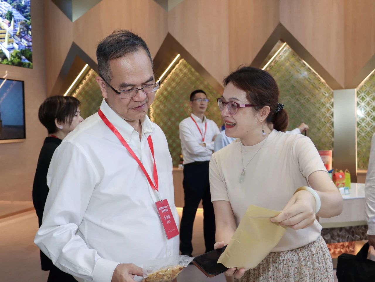 在匯聚中心,參訪團(tuán)從東盟國(guó)家主題館參觀到RCEP其他區(qū)域國(guó)家主題館,一路興致盎然,熱情咨詢(xún)項(xiàng)目的相關(guān)信息并不斷合影留念。他們紛紛表示,匯聚中心各館融合了各國(guó)當(dāng)?shù)靥厣ㄖ懊袼罪L(fēng)情元素,巧妙將各國(guó)特色產(chǎn)品進(jìn)行突出展示與銷(xiāo)售,這樣的方式十分特別,對(duì)商家與消費(fèi)者來(lái)說(shuō)是一種創(chuàng)新的體驗(yàn)。其中,來(lái)自澳門(mén)各東盟國(guó)家商會(huì)的會(huì)長(zhǎng)們,對(duì)各自國(guó)家的主題展館尤其感興趣,當(dāng)即就商品入駐流程及具體事宜與匯聚中心團(tuán)隊(duì)進(jìn)行詳細(xì)對(duì)接,現(xiàn)場(chǎng)氣氛熱烈!