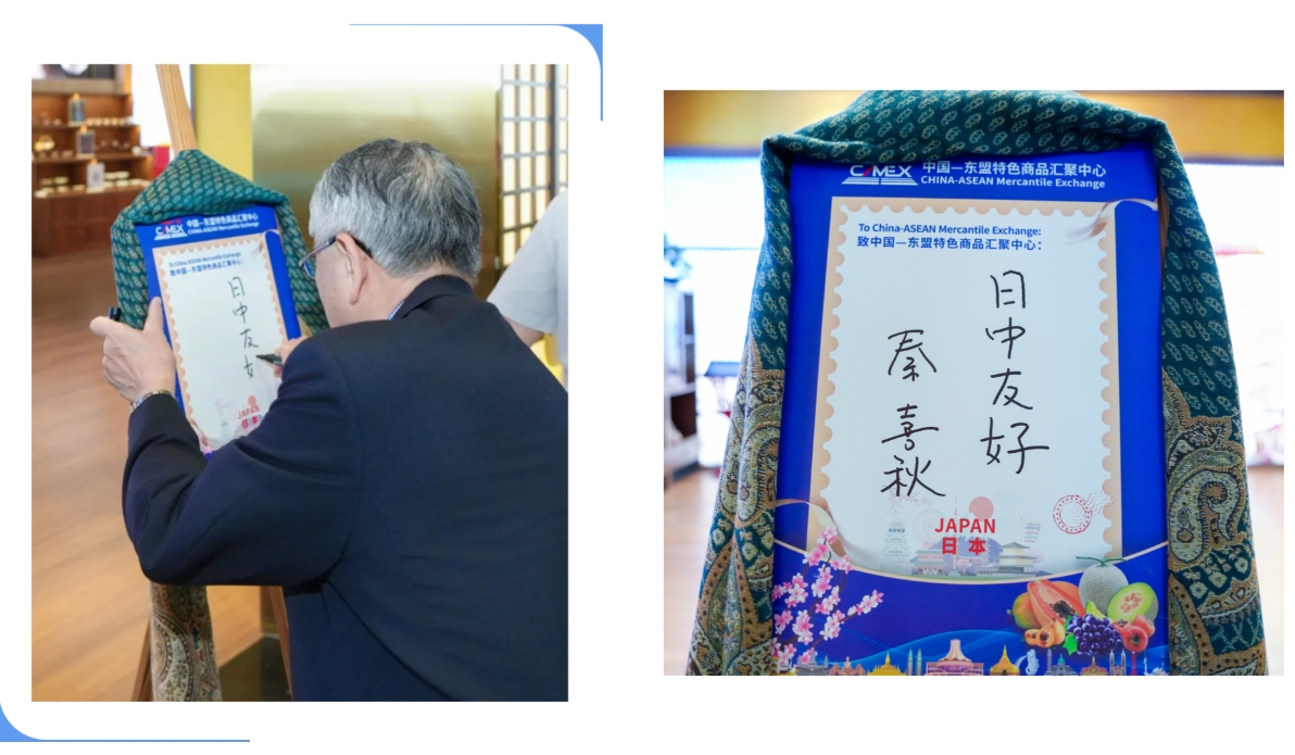 隨即,秦喜秋副會(huì)長(zhǎng)在日本館書(shū)寫(xiě)下“日中友好”的寄語(yǔ),并祝愿匯聚中心發(fā)展越來(lái)越好!他表示,本次參觀考察收獲滿(mǎn)滿(mǎn),但行程較為匆忙,仍覺(jué)意猶未盡,期待未來(lái)有更多機(jī)會(huì)到匯聚中心作進(jìn)一步溝通交流。