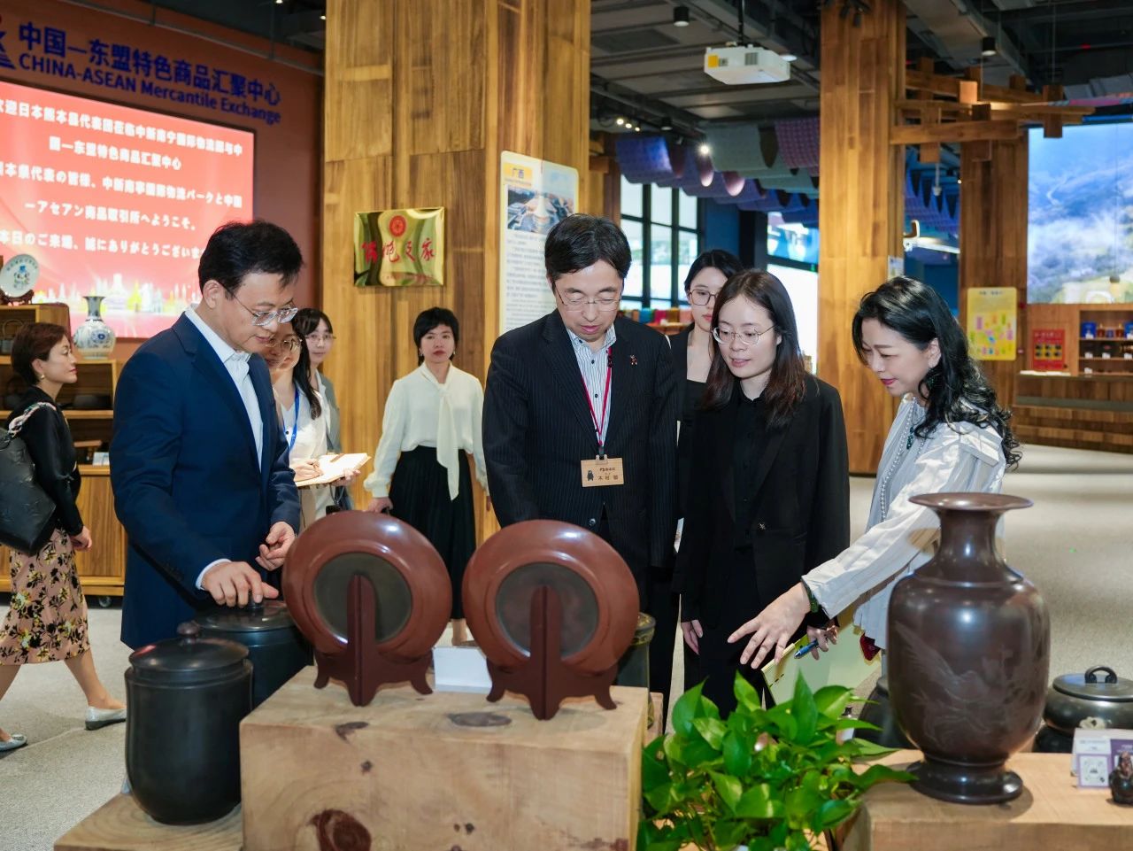 在日本館,雙方還就進(jìn)一步推動(dòng)日本尤其是熊本縣的產(chǎn)品通過(guò)匯聚中心更好地進(jìn)入廣西市場(chǎng)進(jìn)行了深入交流。