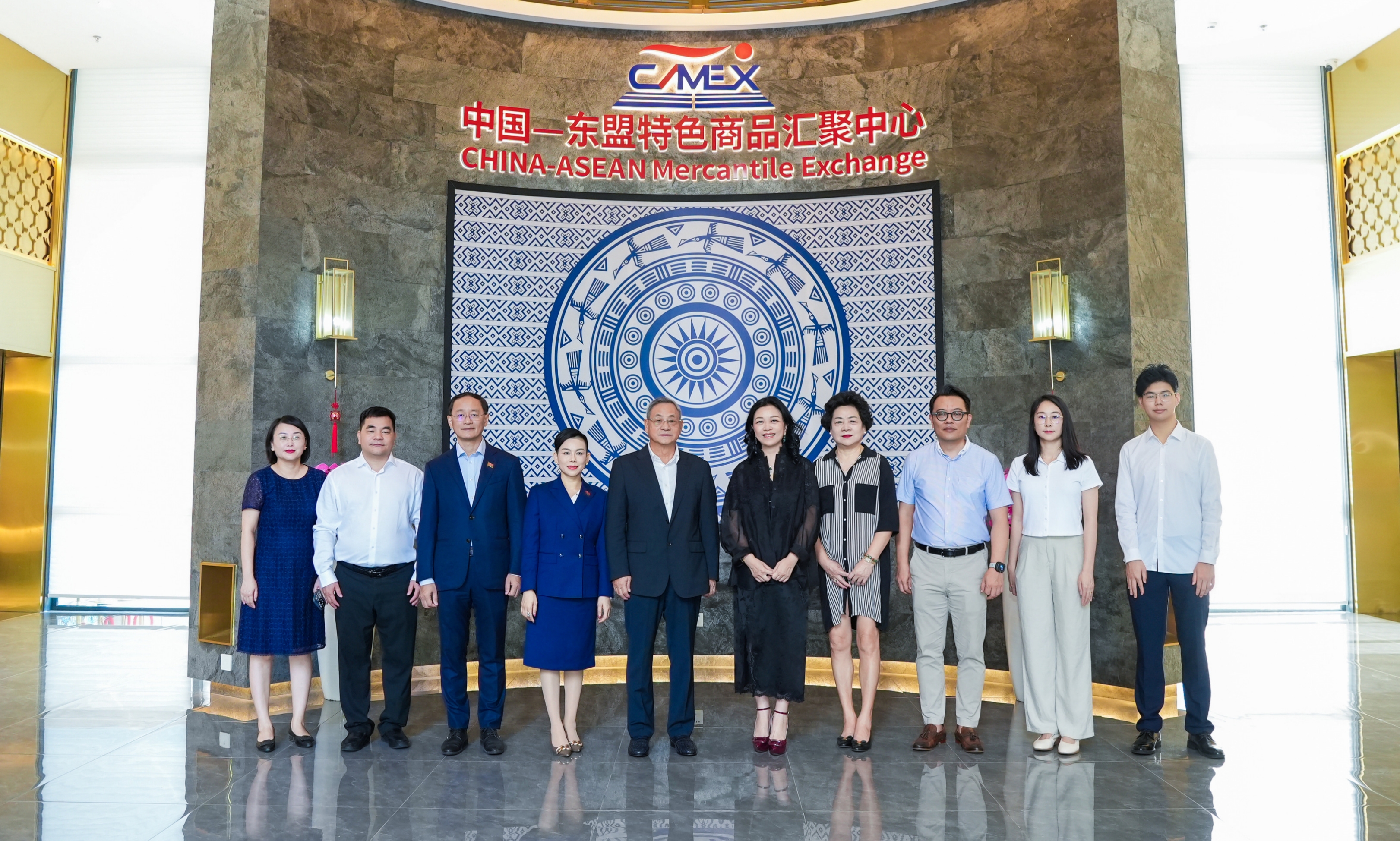 2025年7月28日,柬埔寨RCEP產(chǎn)業(yè)合作委員會及柬埔寨國際商會青年發(fā)展處一行到中國—東盟特色商品匯聚中心(簡稱“匯聚中心”)和中國—東盟水果交易中心(簡稱“水果交易中心”)展廳參觀考察。柬埔寨國際商會青年發(fā)展處一直與匯聚中心保持著密切溝通與聯(lián)系,并在此前已簽署了《戰(zhàn)略合作備忘錄》。廣西新中產(chǎn)業(yè)投資有限公司、中國—東盟特色商品匯聚中心董事長趙海燕熱情接待了考察團一行。