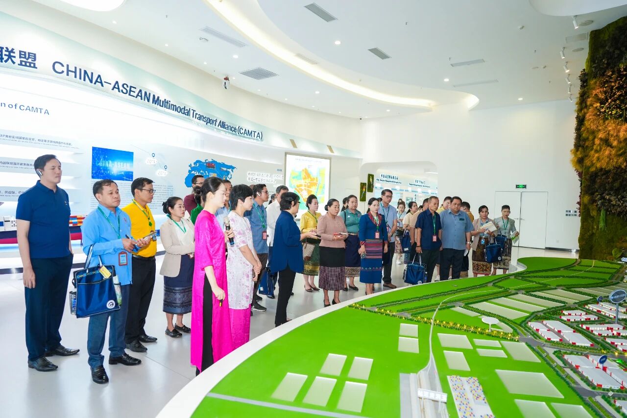 考察團(tuán)來到中新物流園展廳,詳細(xì)聽取了園區(qū)建設(shè)與運(yùn)營情況的介紹,并重點(diǎn)了解項(xiàng)目在提升物流便利化水平方面所發(fā)揮的積極作用。考察團(tuán)表示,中新物流園不僅具備多式聯(lián)運(yùn)的物流服務(wù)能力,還配套有大型物流倉儲和冷鏈等設(shè)施,在推動國際貨物貿(mào)易優(yōu)化升級方面優(yōu)勢顯著,未來希望能與園區(qū)在物流、商貿(mào)等領(lǐng)域加強(qiáng)交流與合作,互利共贏。