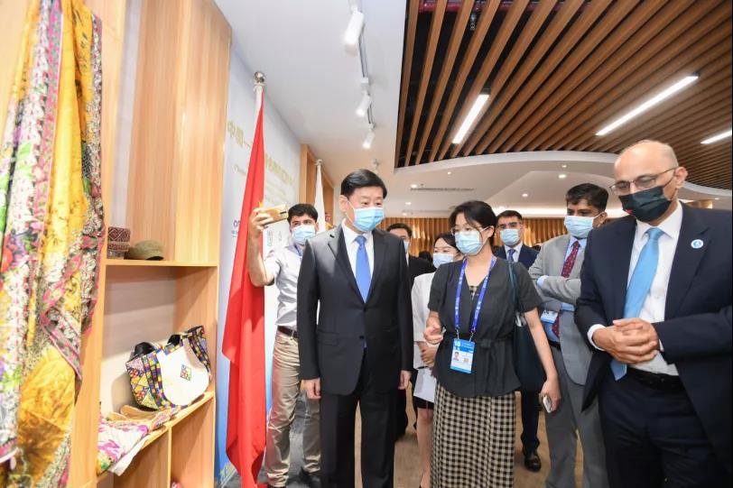 揭牌儀式結束后,王小東、莫因·哈克等還參觀了巴基斯坦商品展示區(qū)。此次入駐中國—東盟特色商品匯聚中心,巴基斯坦重點展出紡織品、食品、木制品以及外科手術產品和運動產品等主要出口產品。